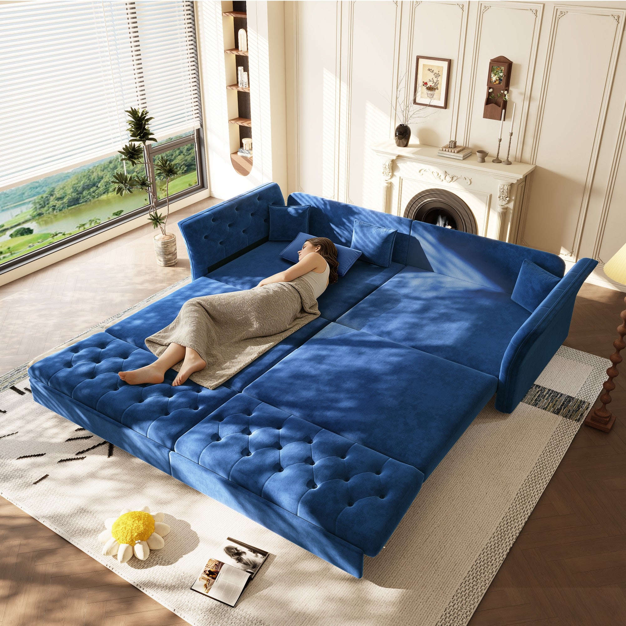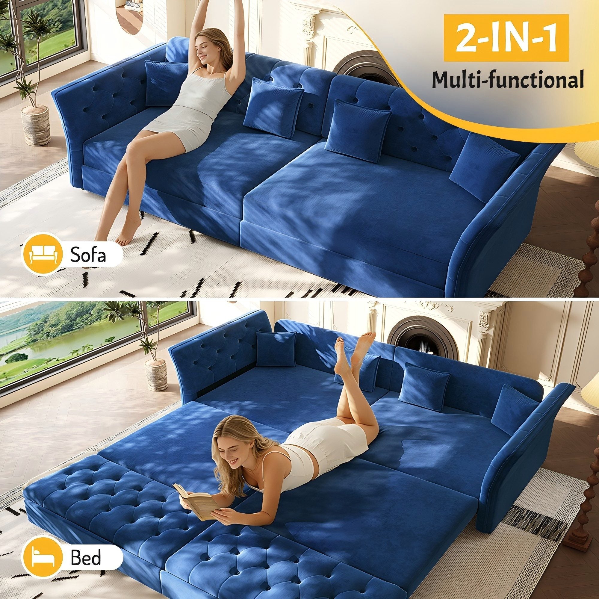 LLappuil 100" Pull Out Sofa Bed King Size, Lovseat Sleeper Sofa Couch Convertible Sofa Bed, Velvet Sofa for Living Room Blue