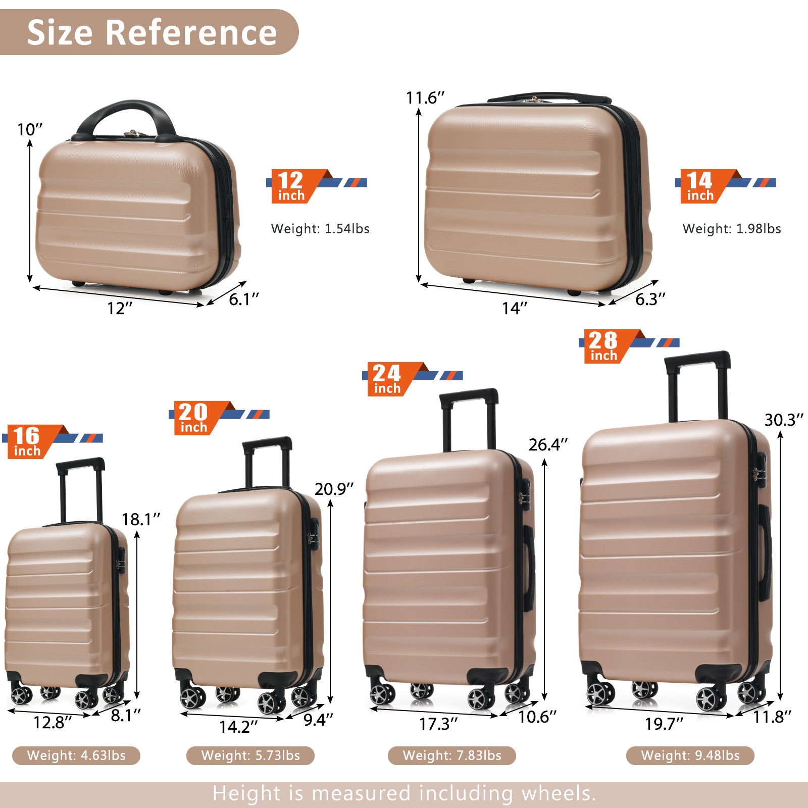 LLappuil 6 Piece Luggage Set, ABS Hardshell Suitcases with Dual Spinner Wheels for Travel & Business