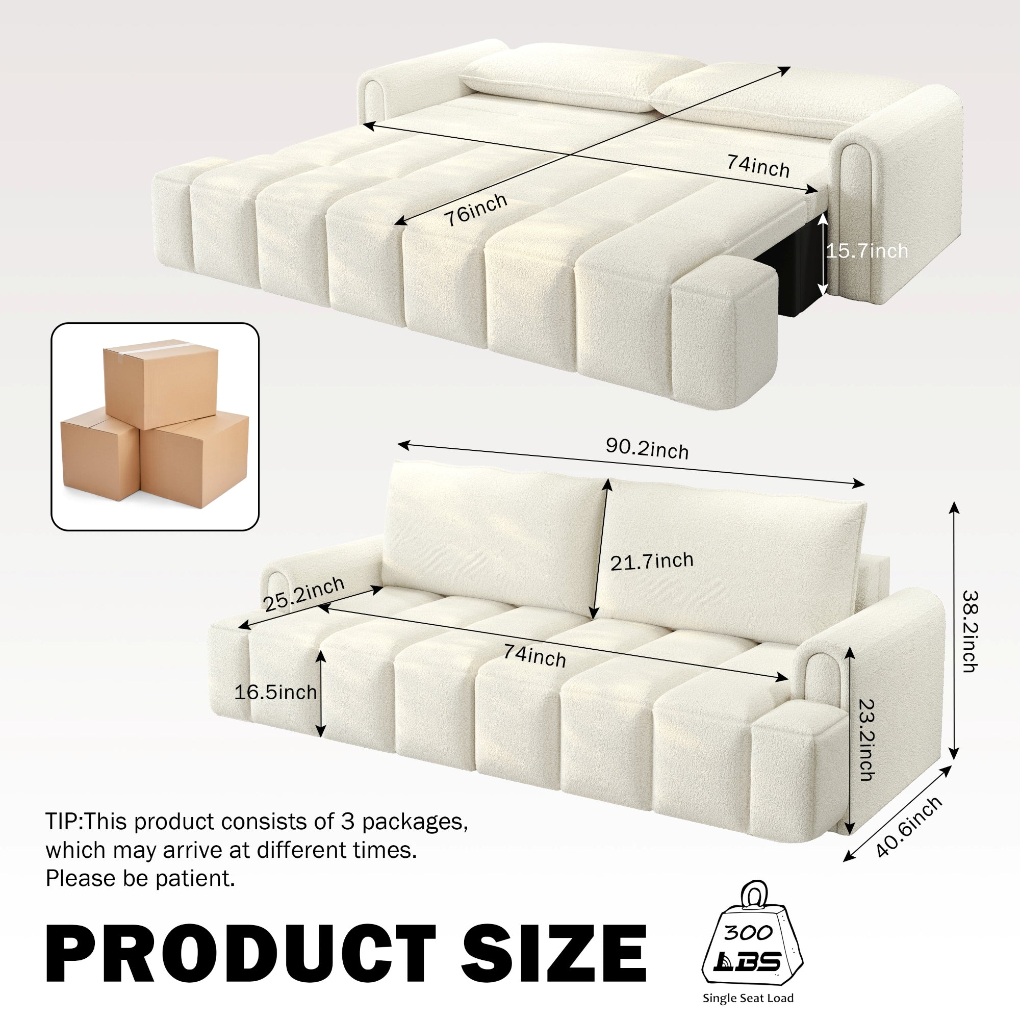 LLappuil 90" Cloud Couch, Oversized Floor Sofa Convertible Sofa Bed King Size, Teddy Sofa Couch for Living Room Beige