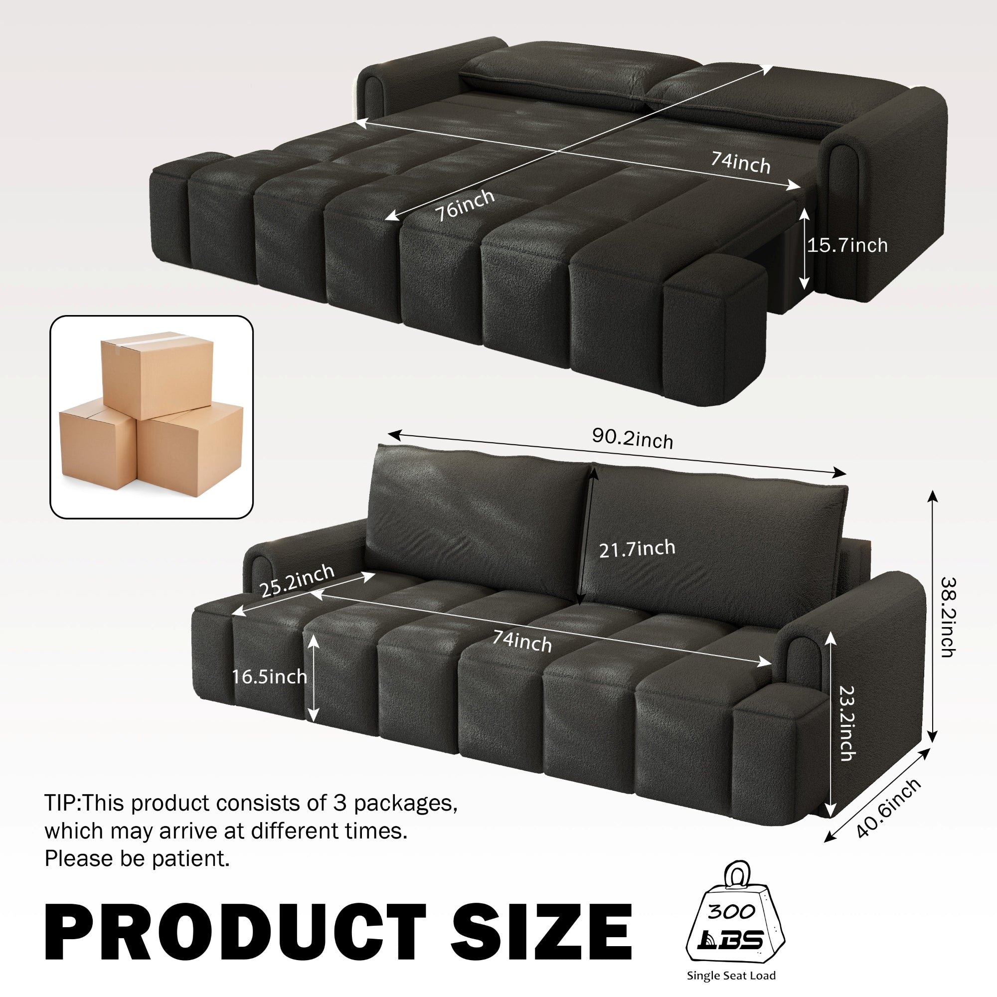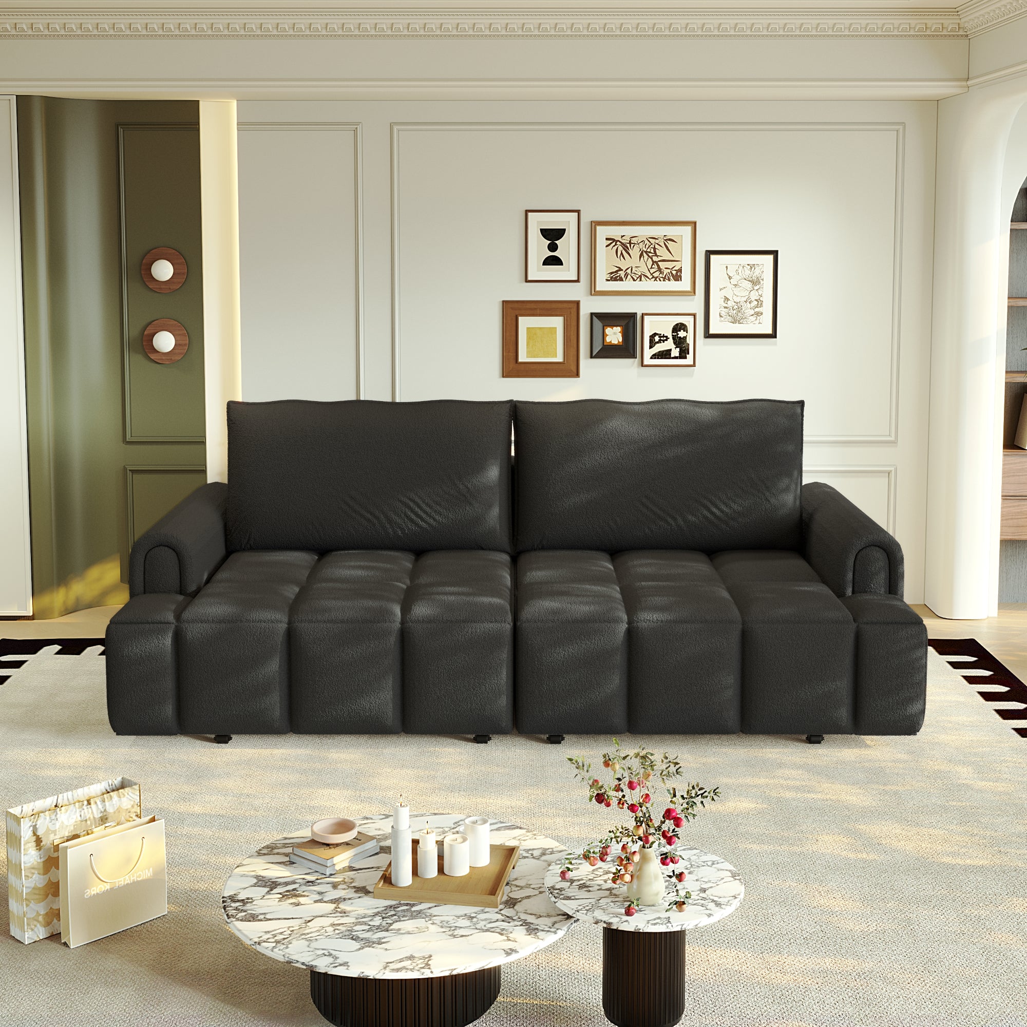 LLappuil 90" Cloud Couch, Oversized Floor Sofa Convertible Sofa Bed King Size, Teddy Sofa Couch for Living Room Black