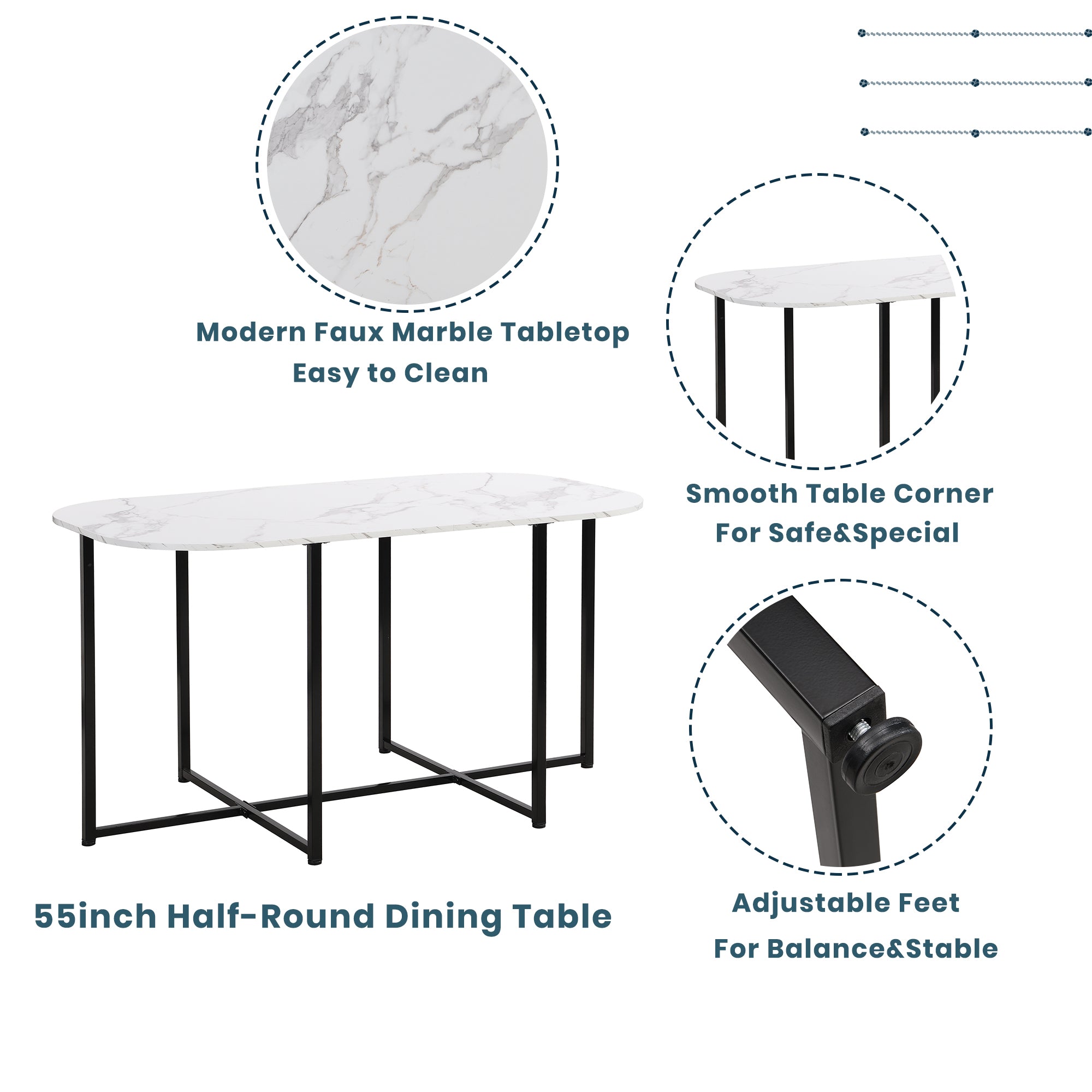 LLappuil Dining Table Set for 6, 7 Piece Dining Table Set with 55" Dining Table, 6 Dining Chairs Black