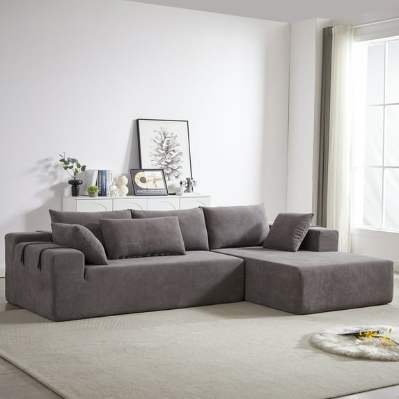 LLappuil Modular Sectional Sofa, 108" L-Shaped Sectional Sofa with Right Chaise, 30" Deep Seat Chenille Cloud Sofa Couch for Living Room Gray
