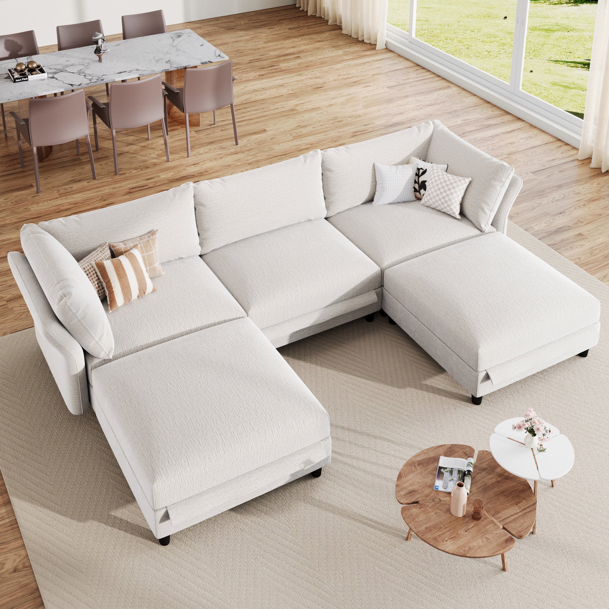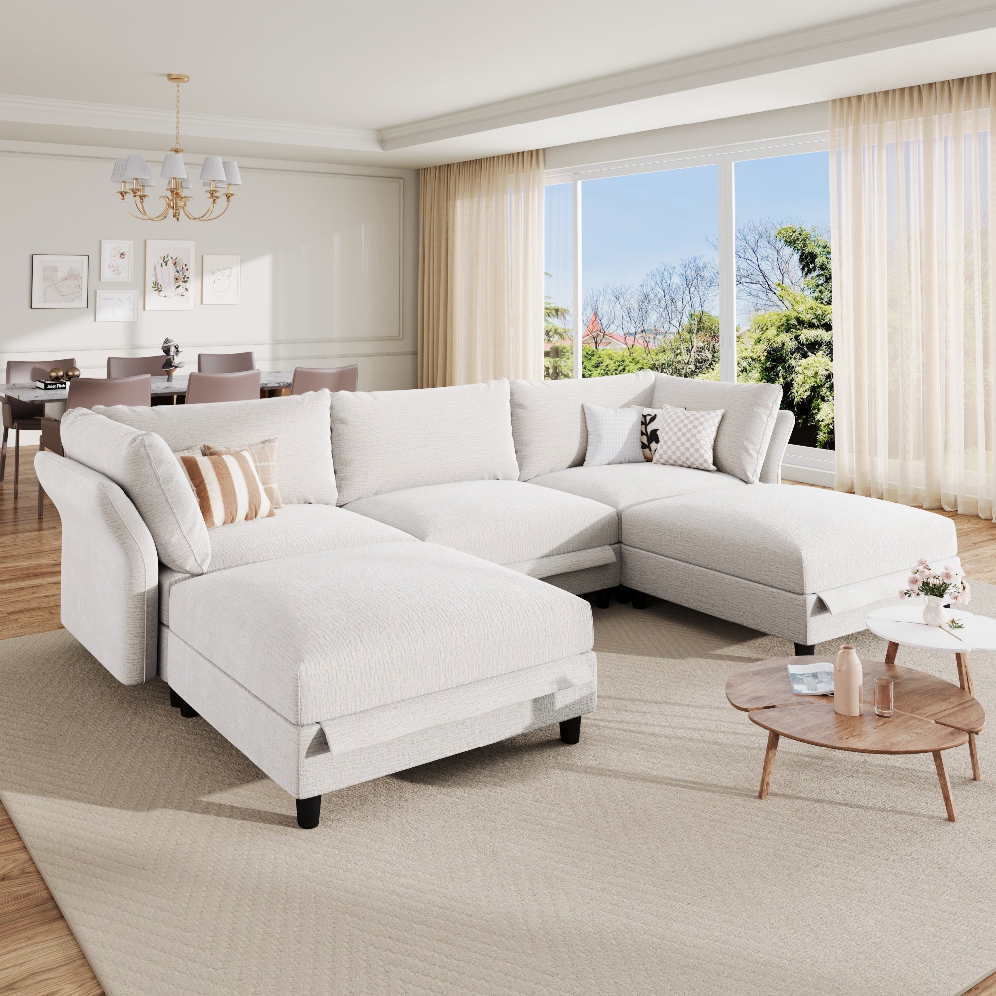 LLappuil Modular Sectional Sofa, 5 Seat Modular Sectional Sofa with Storage, Oversized Deep Seat Chenille Sofa for Living Room