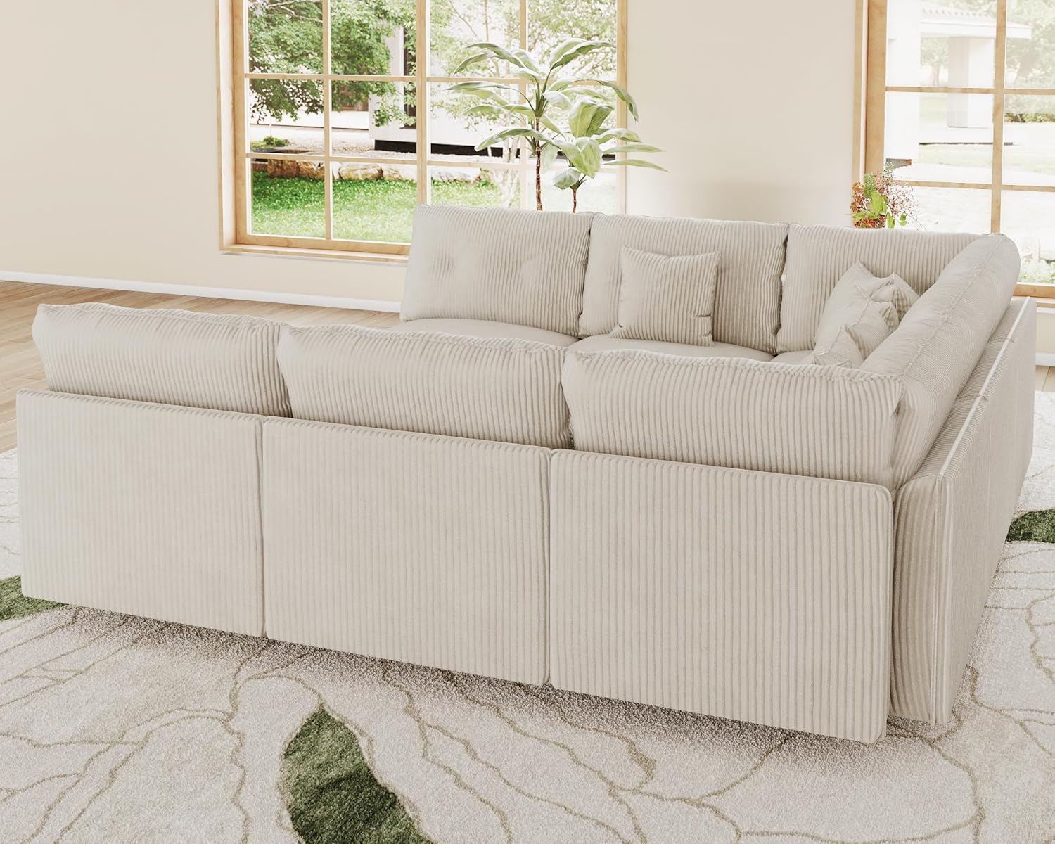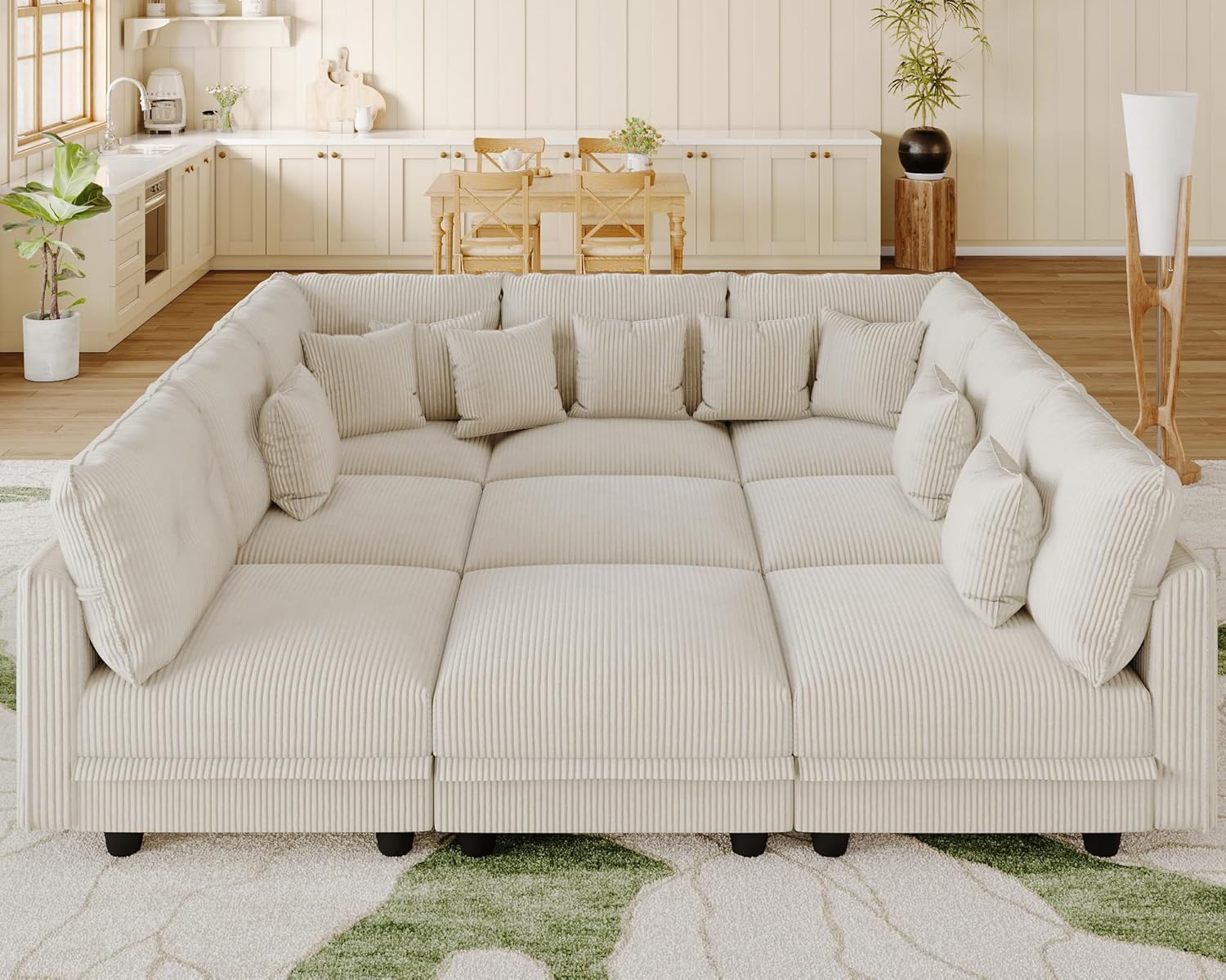 LLappuil Modular Sectional Sofa, 9 Seat Corduroy Sectional Sofa with Storage, 9 Back Cushion 9 Throw Pillow Beige