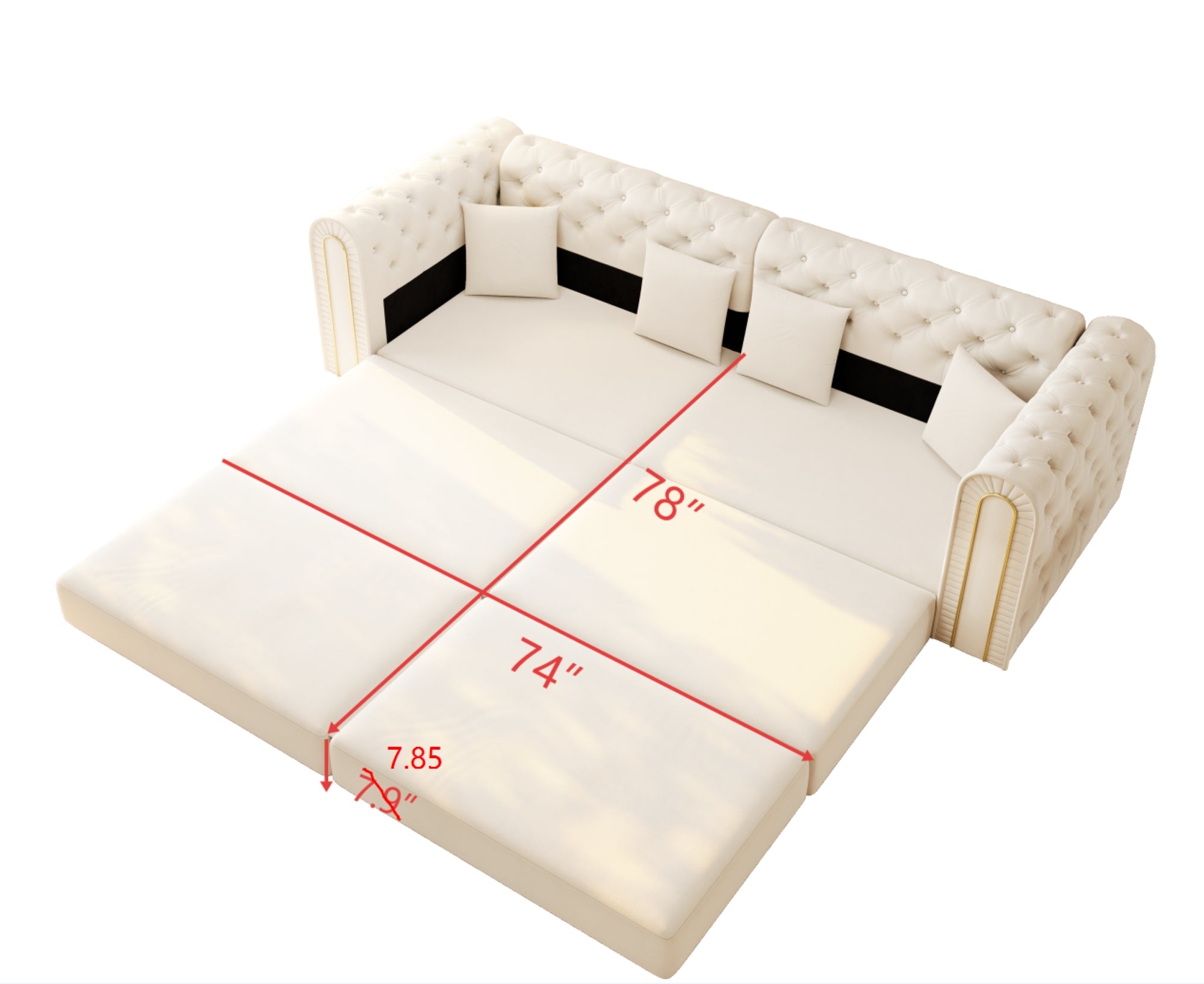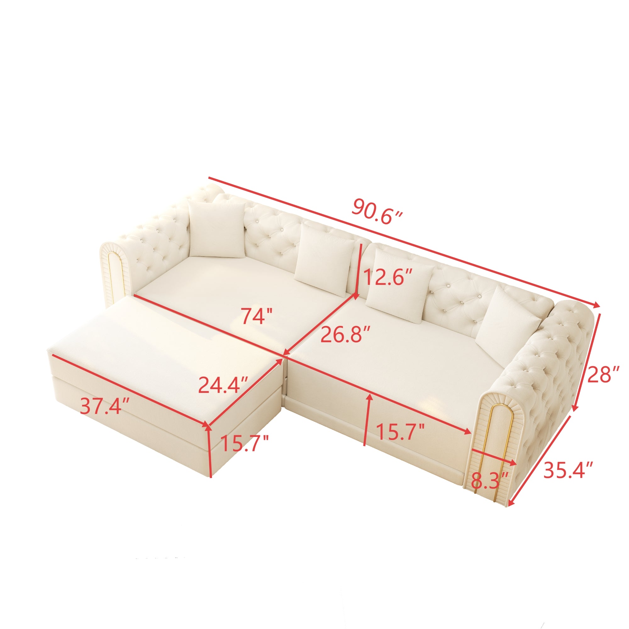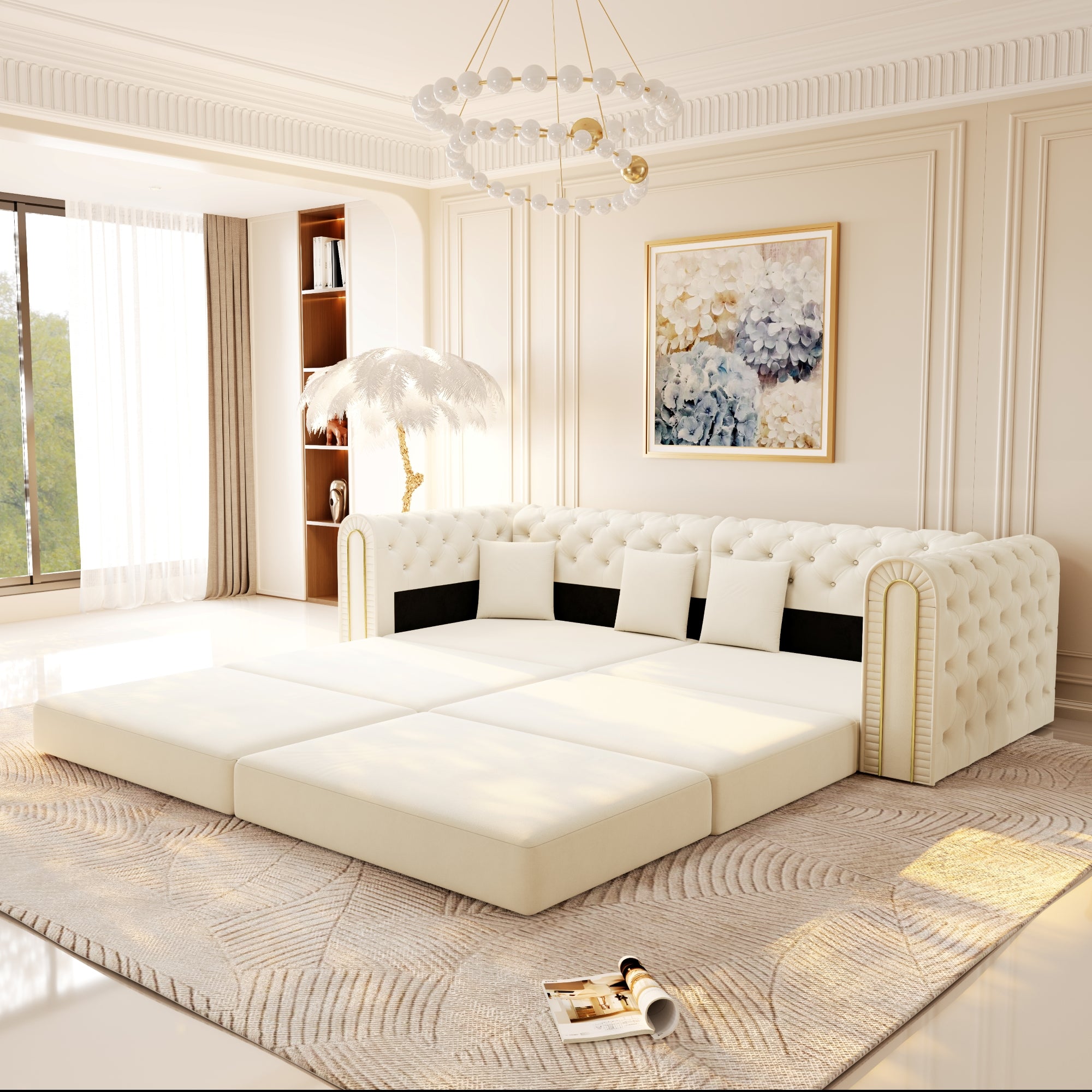 LLappuil Modular Sectional Sofa, Oversized Floor Sofa Convertible Sleeper Sofa Bed King Size, Velvet 3 Seater Sofa with Movable Ottoman for Living Room Beige