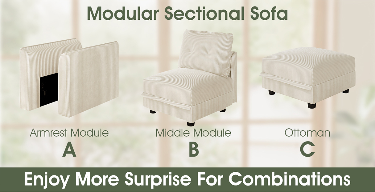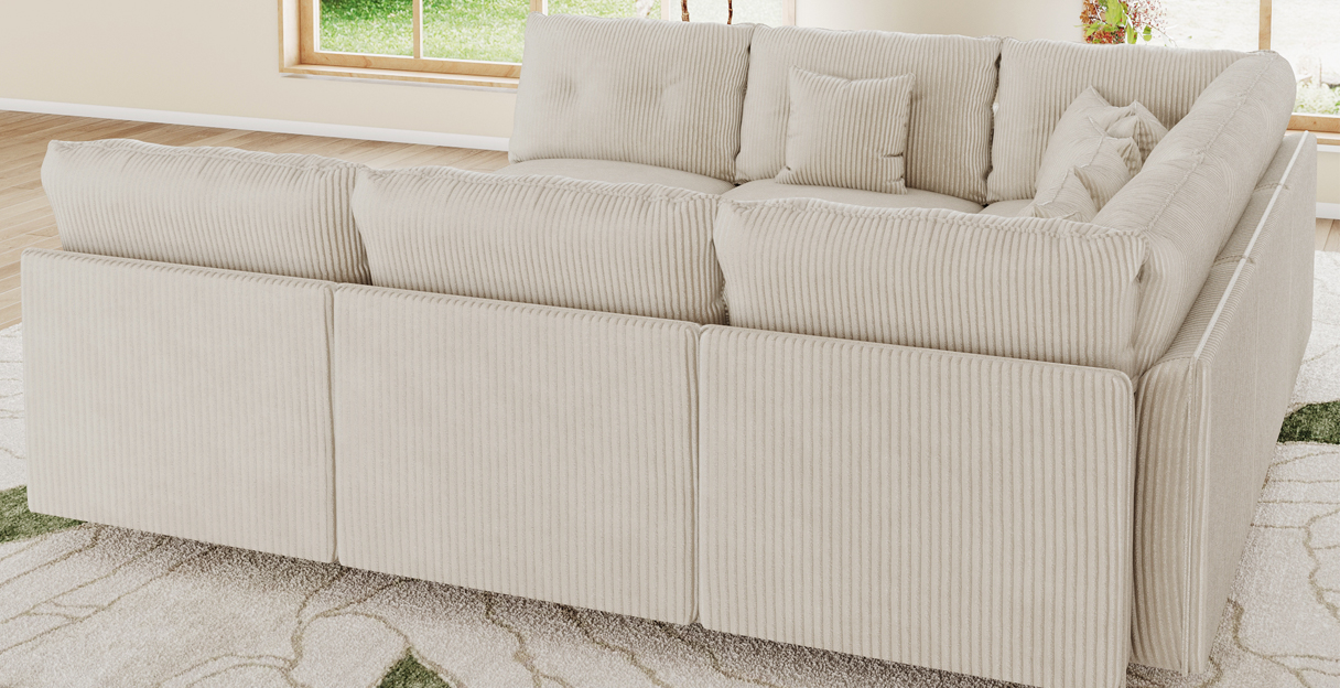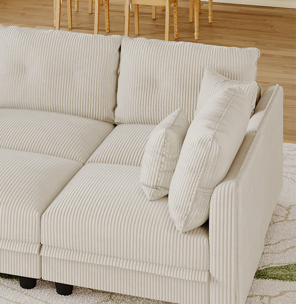I was a little nervous about buying furniture online, but this couch exceeded all my expectations. It’s everything I wanted and more! The modular design is perfect for our living room layout, and we were able to adjust it to fit our space easily. The corduroy fabric is not only soft but also incredibly durable, I have 2 cats and 1 dog and they both really like to sleep on it! One of my favorite features is that each middle seat comes with both a back pillow and a match throw pillow! It adds so much comfort and makes lounging even better. The cushions have just the right firmness with a bit of give—perfect for sinking into after a long day without feeling sore. It’s also surprisingly spacious, so I can’t wait to spend even more time on it as we get settled into our new home. Bonus points for the amazing customer service from LLappuil—they kept us updated every step of the way and made sure everything arrived on time. If you're on the fence about buying this couch, just do it! You won’t regret it.