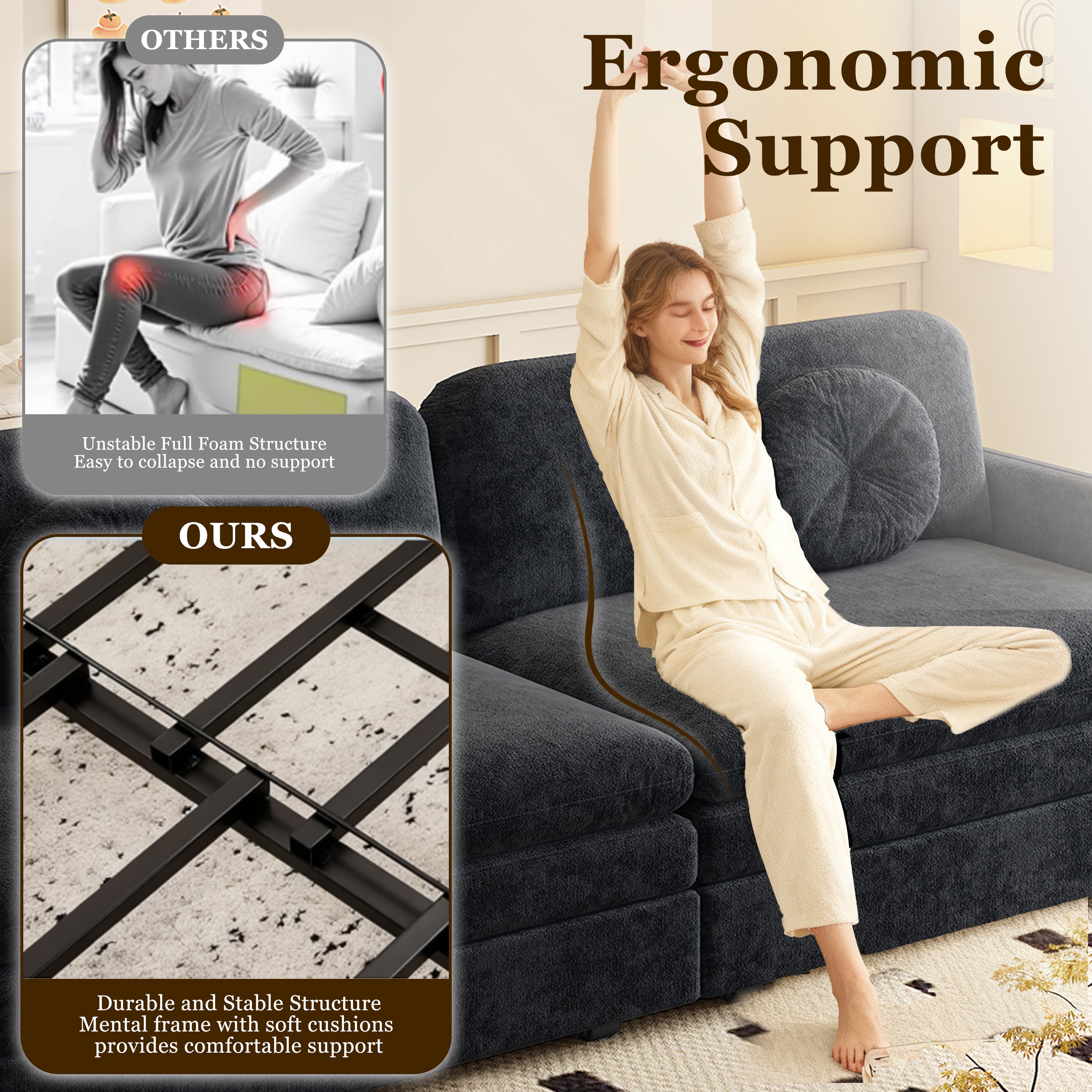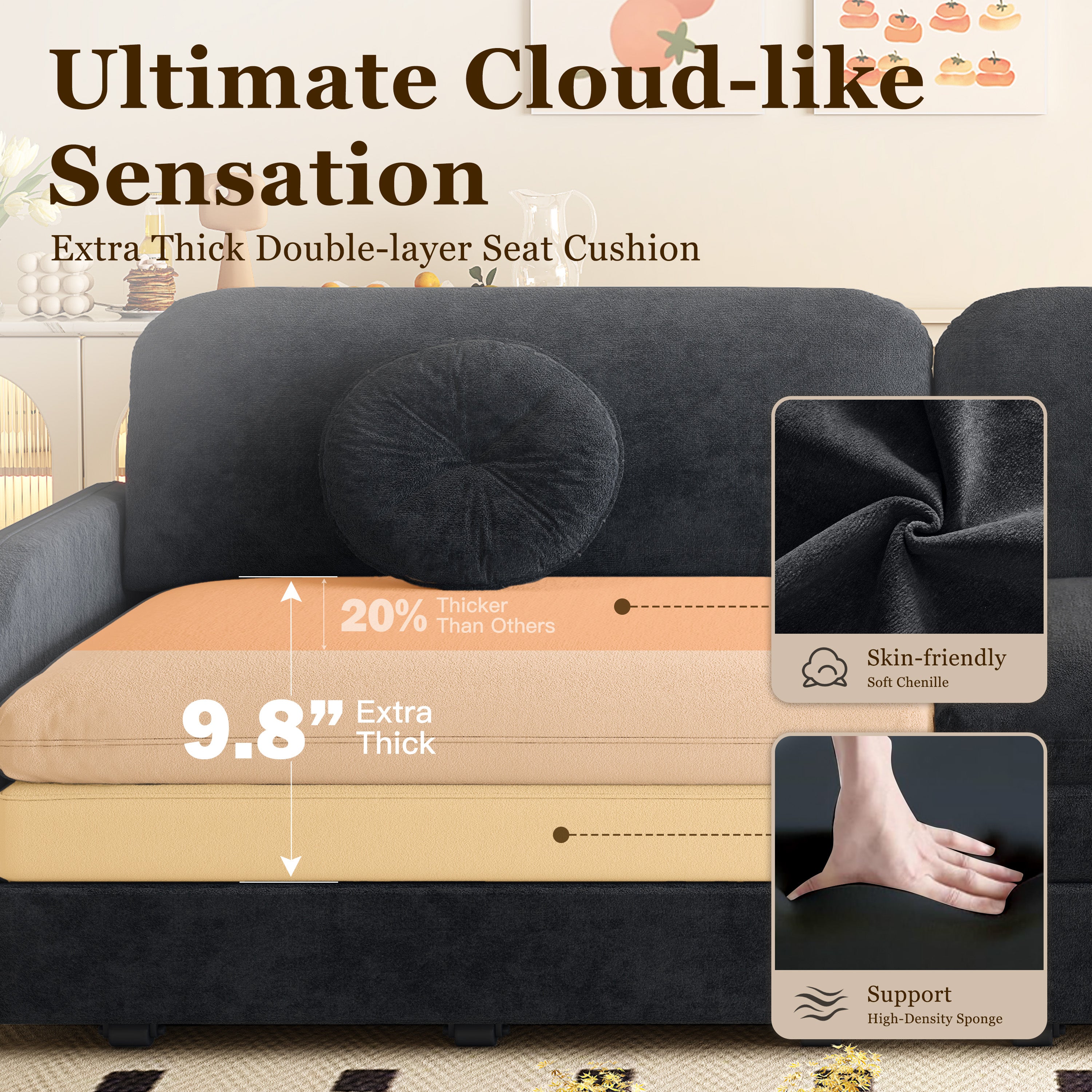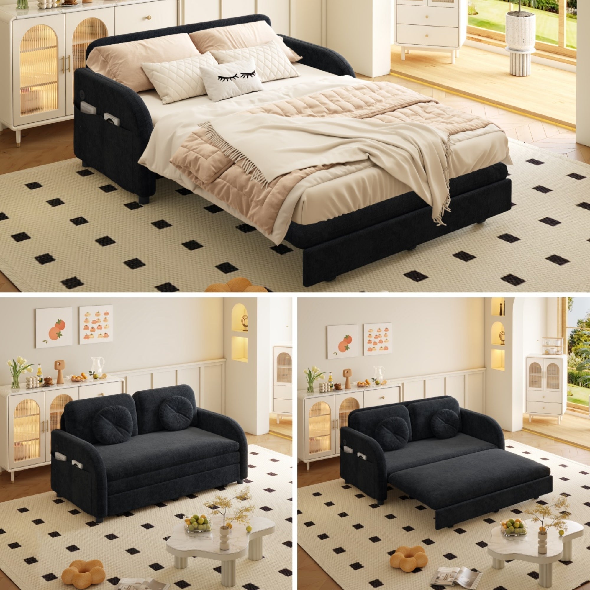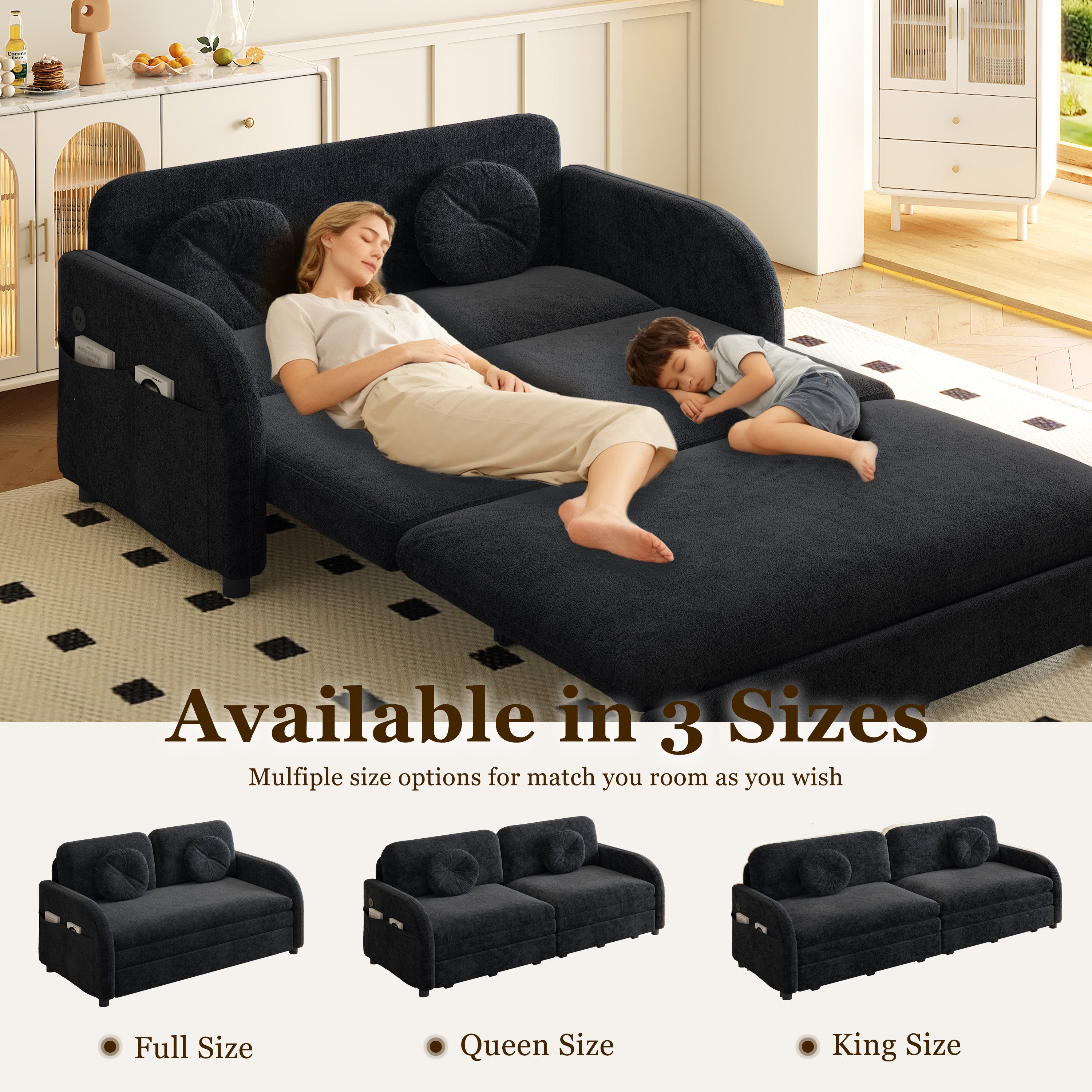 LLappuil Pull Out Sofa Bed Full Size, Loveseat Sofa Covertible Sofa Bed, Chenille Sofa Couch with USB Port, Side Pocket for Living Room Black