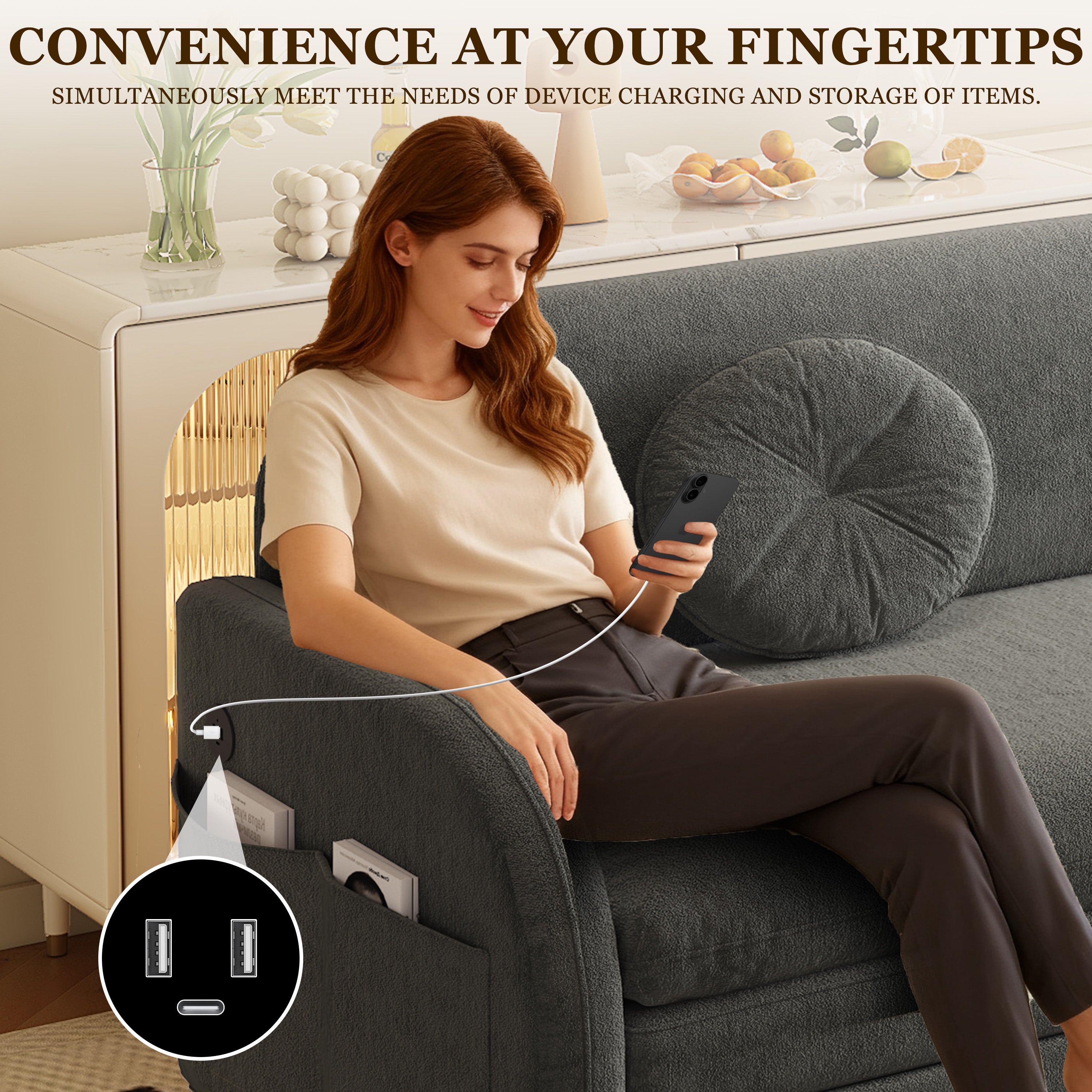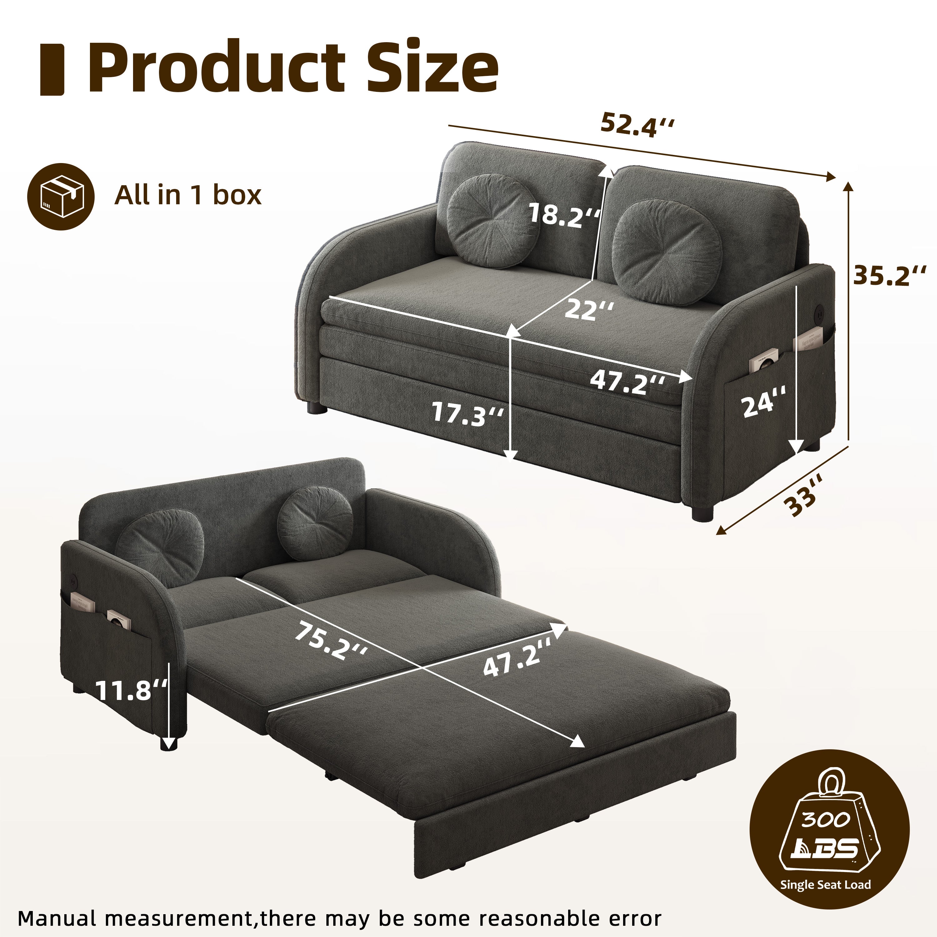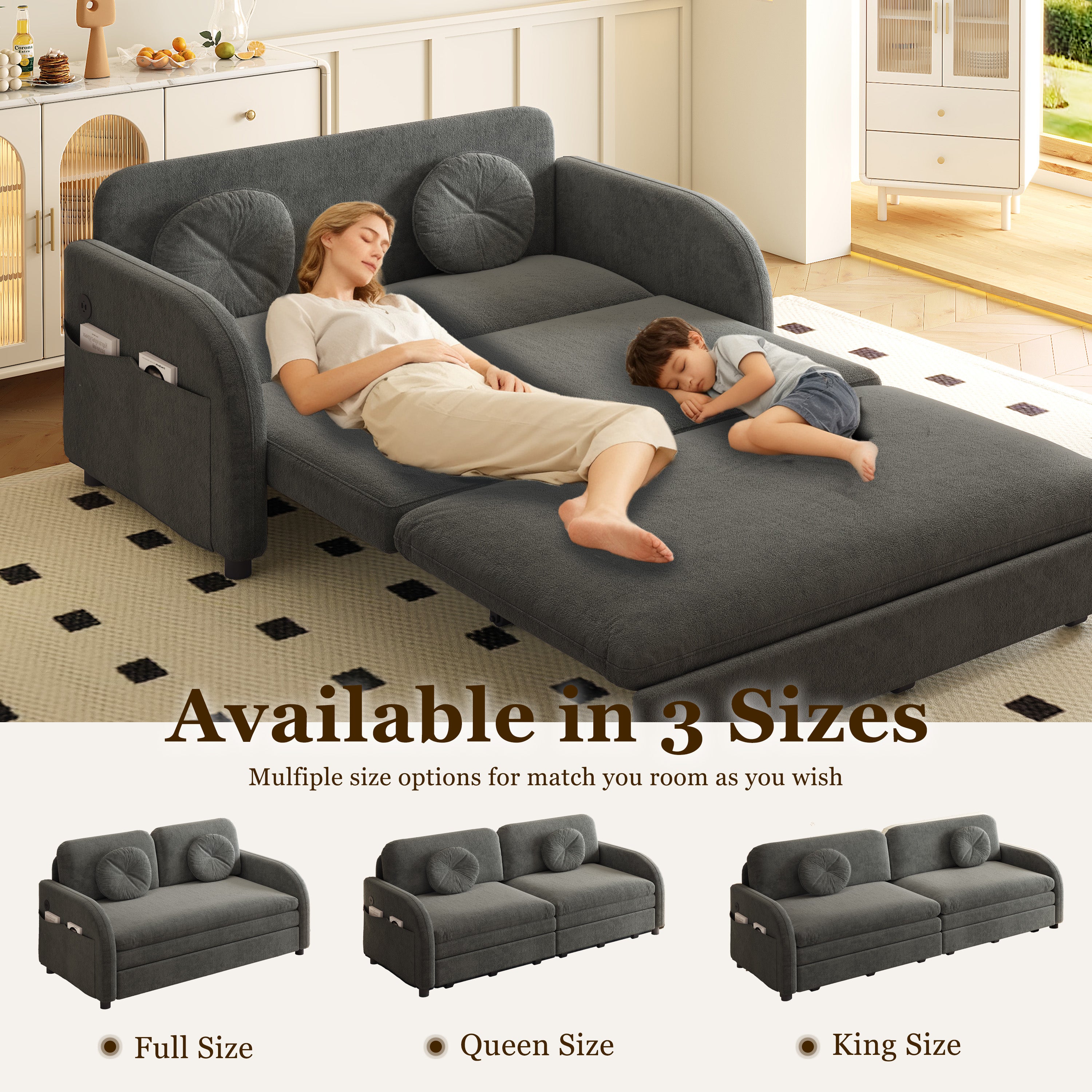 LLappuil Pull Out Sofa Bed Full Size, Loveseat Sofa Covertible Sofa Bed, Chenille Sofa Couch with USB Port, Side Pocket for Living Room Gray