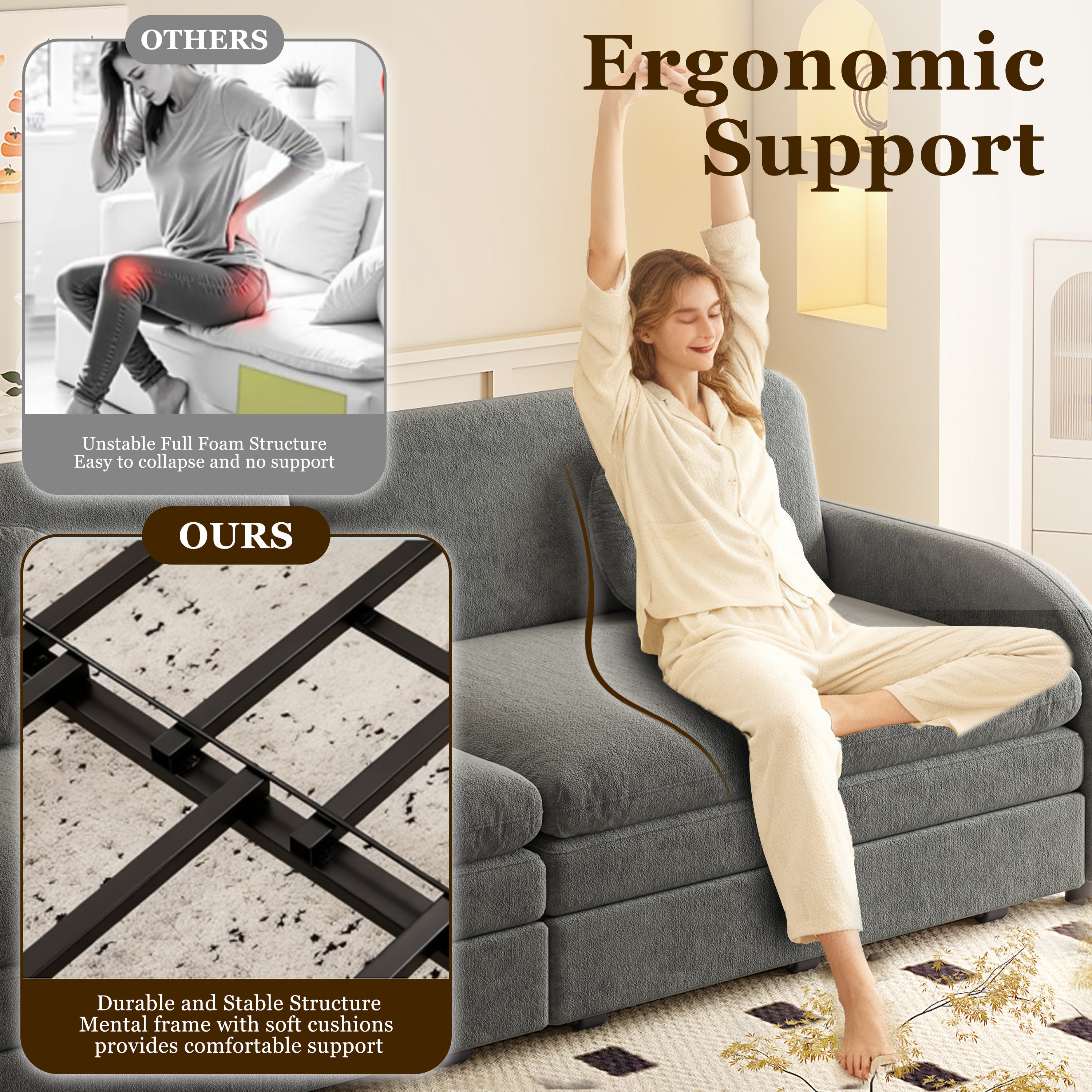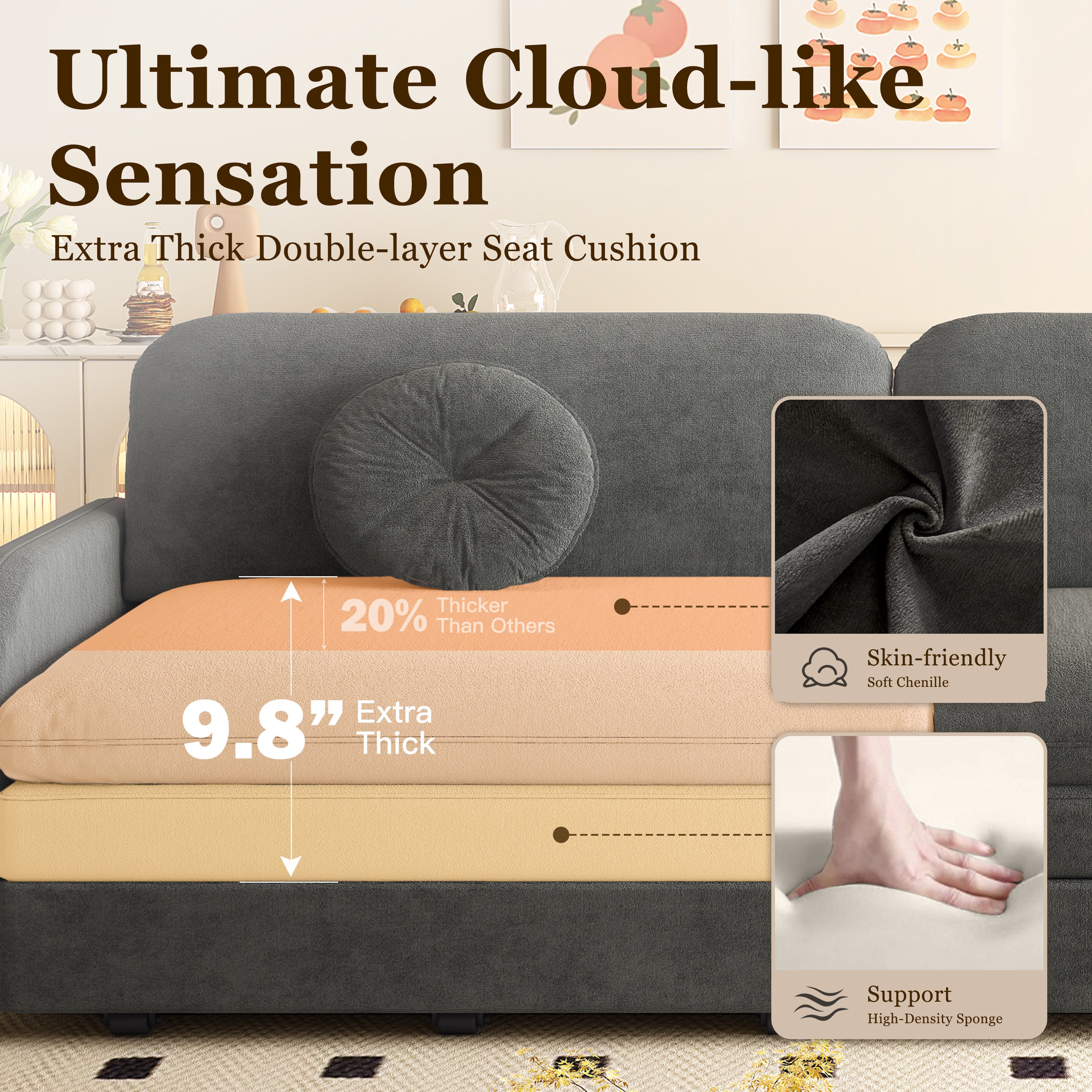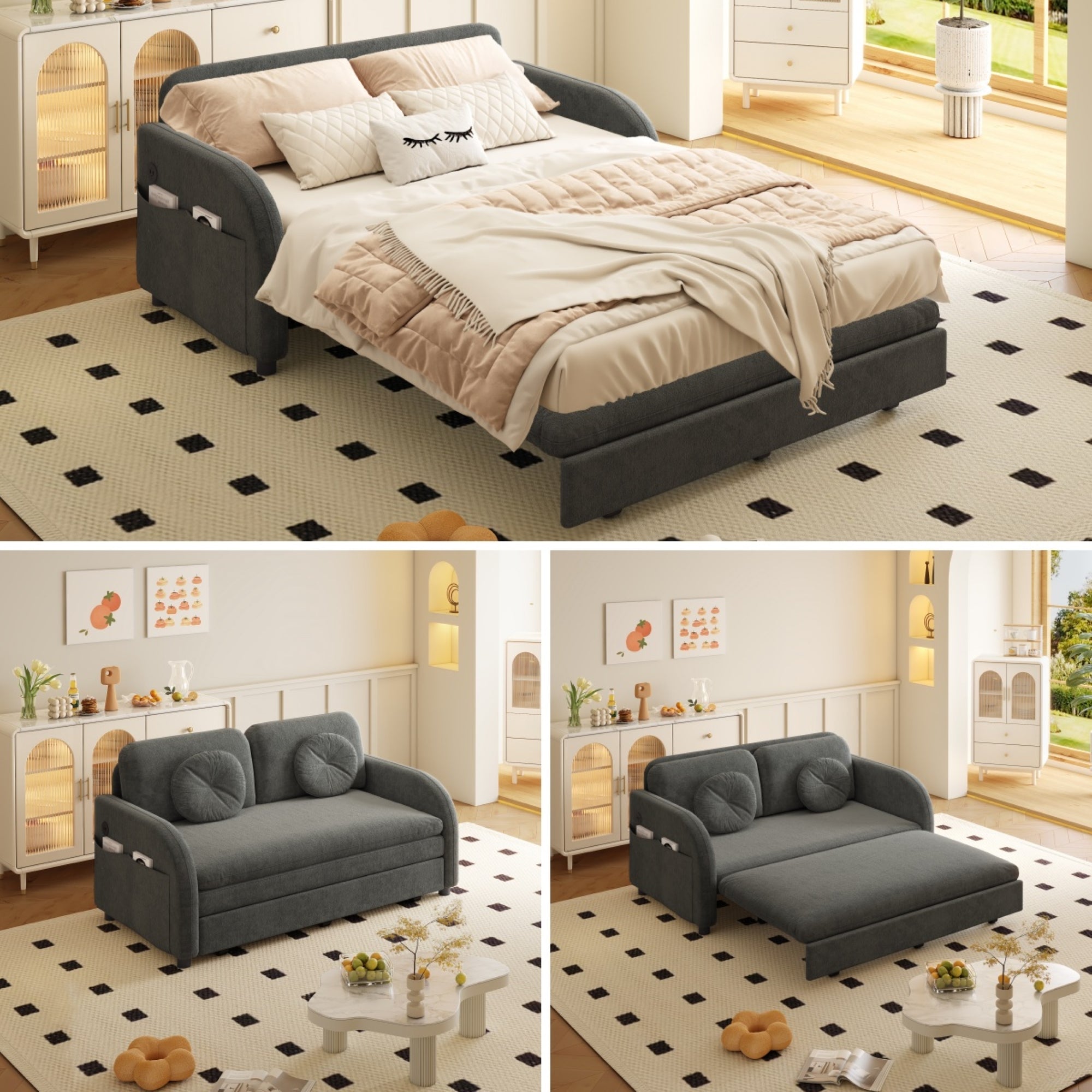 LLappuil Pull Out Sofa Bed Full Size, Loveseat Sofa Covertible Sofa Bed, Chenille Sofa Couch with USB Port, Side Pocket for Living Room Gray