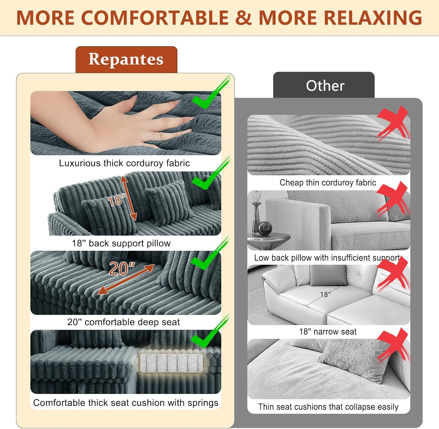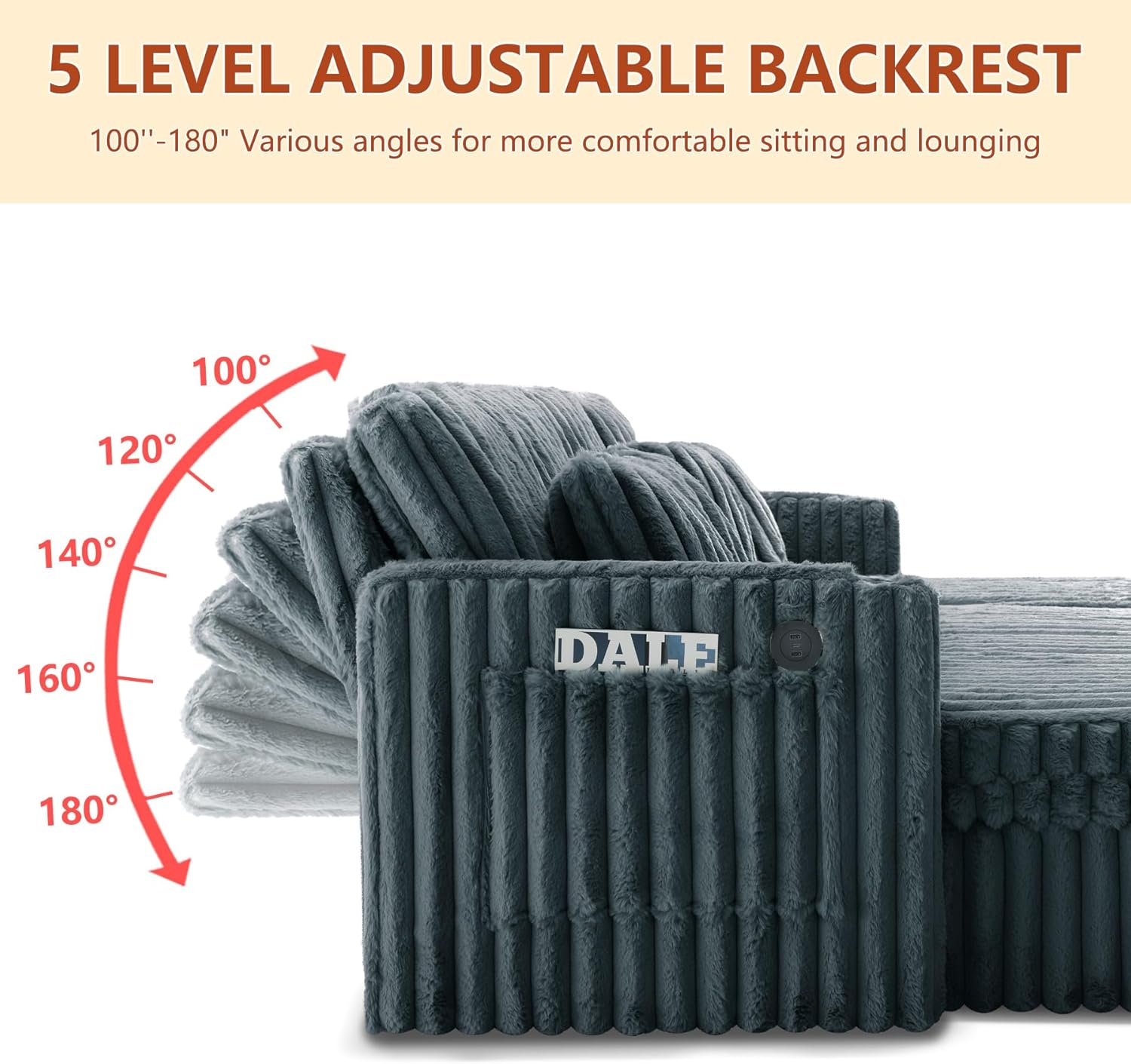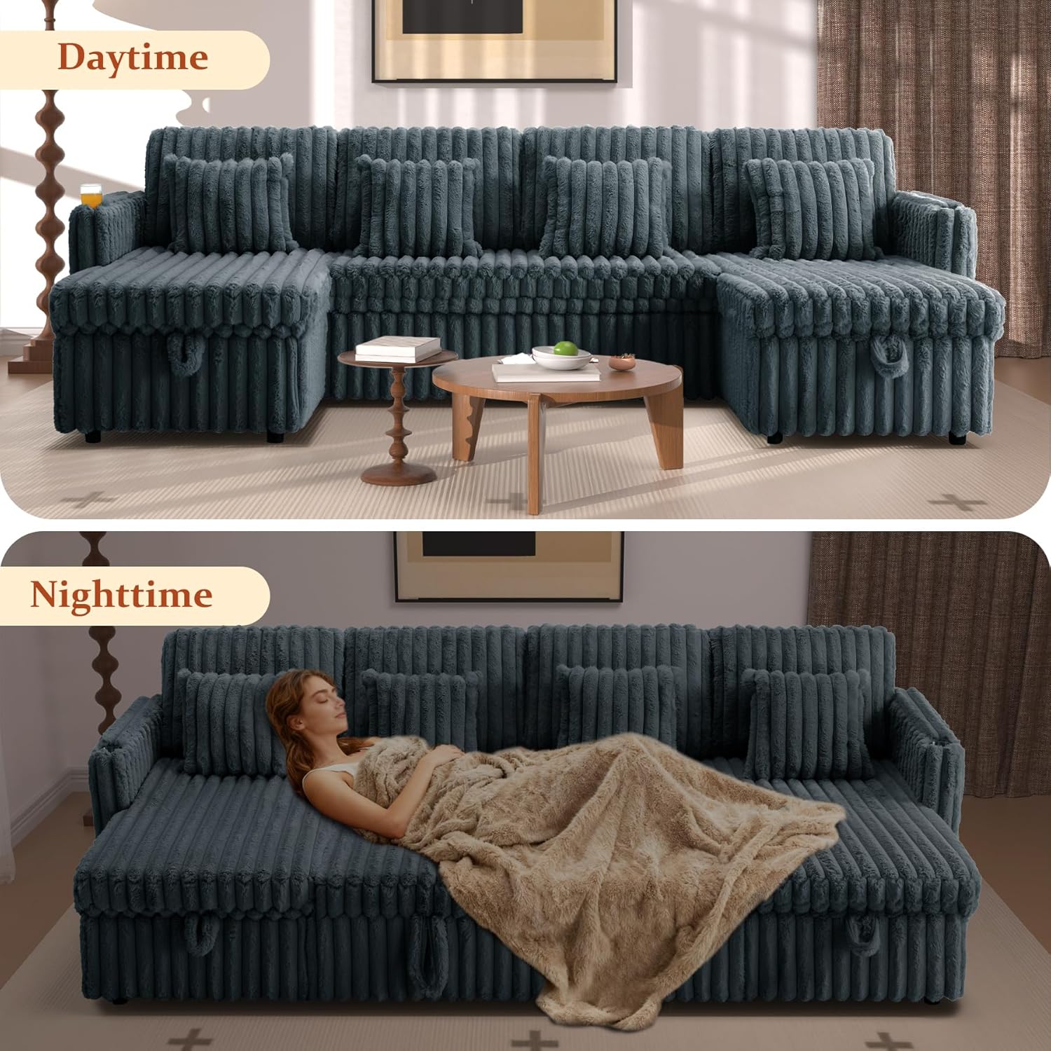 LLappuil Sectional Sofa, 107" U Shaped Sectional Couch with Storage Chaise, Adjustable Backrest, USB Charger, Cup Holder & Side Pocket, Corduroy Sofa with Pull Out Sofa Bed for Living Room Dark Gray