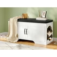 NYBOPAVIS Hidden Cat Litter Box Enclosure, Storage Bench with Removable Divider, Indoor Cat House with Removable PU Leather Seat